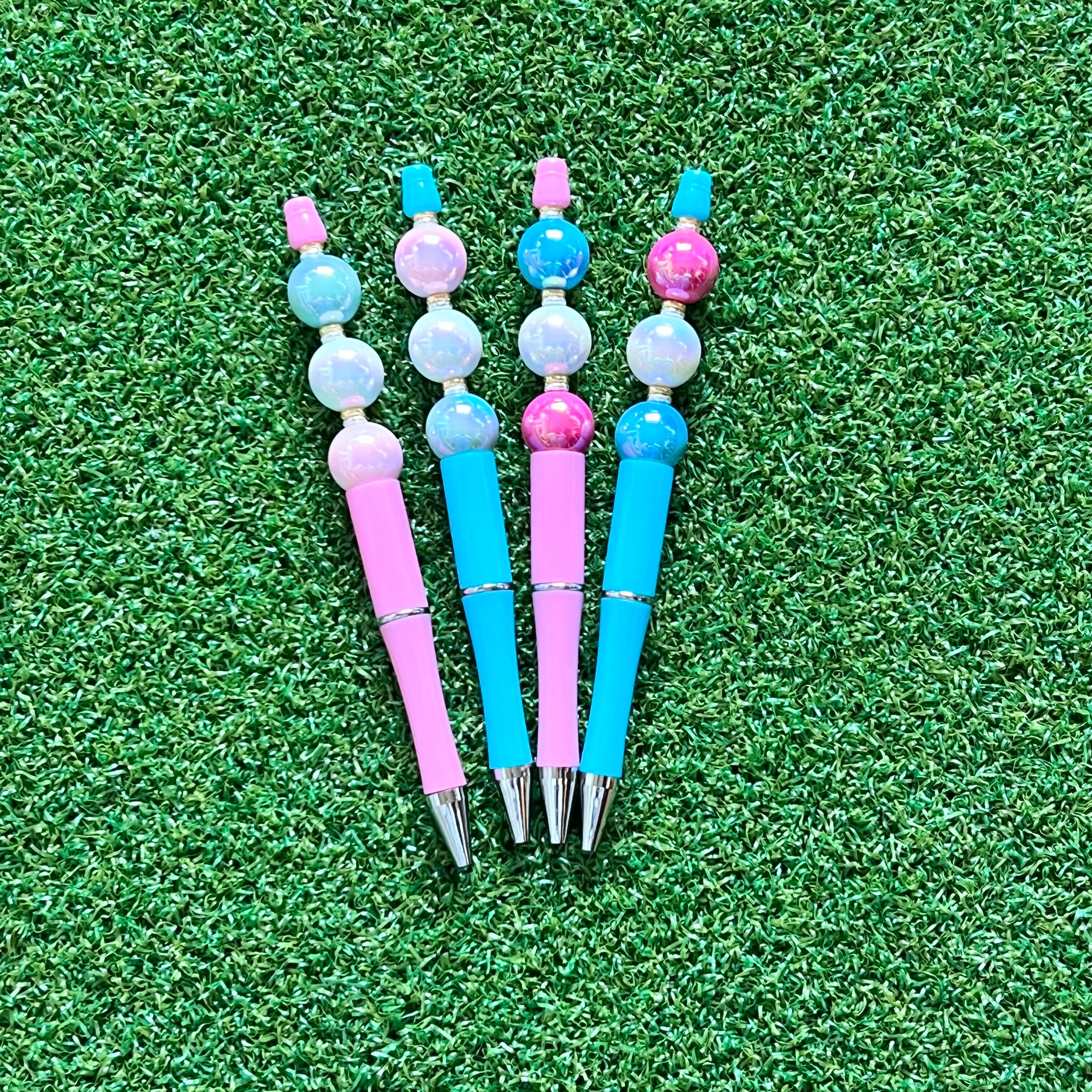ビーズ下の部分とペン先上の部分を待って回すと芯が出ます。